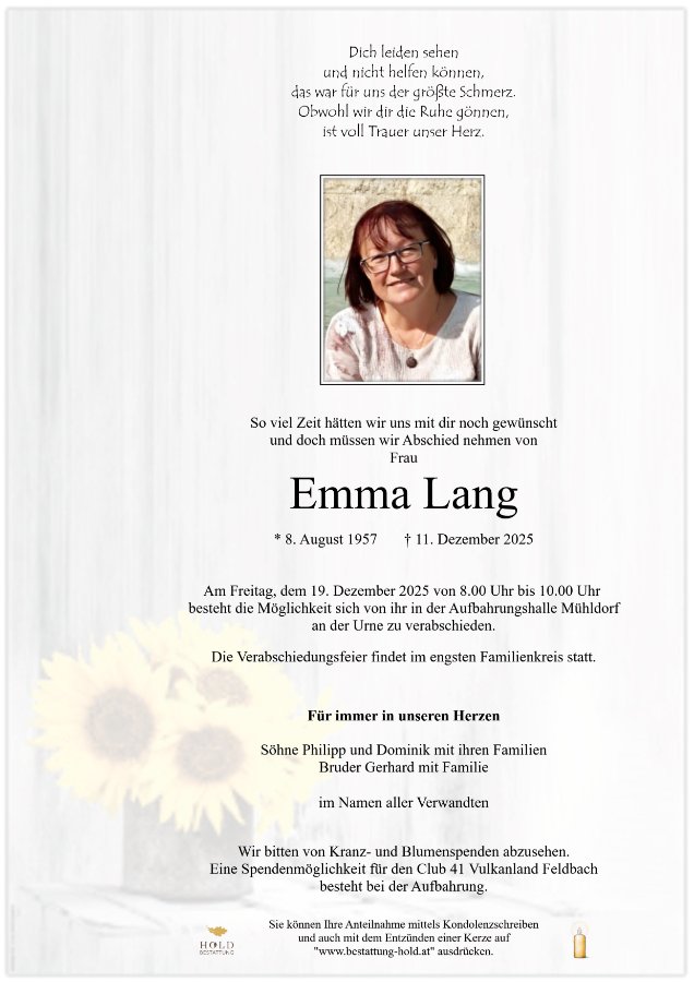 Emma Langgestorben am 11. Dezember 2025
