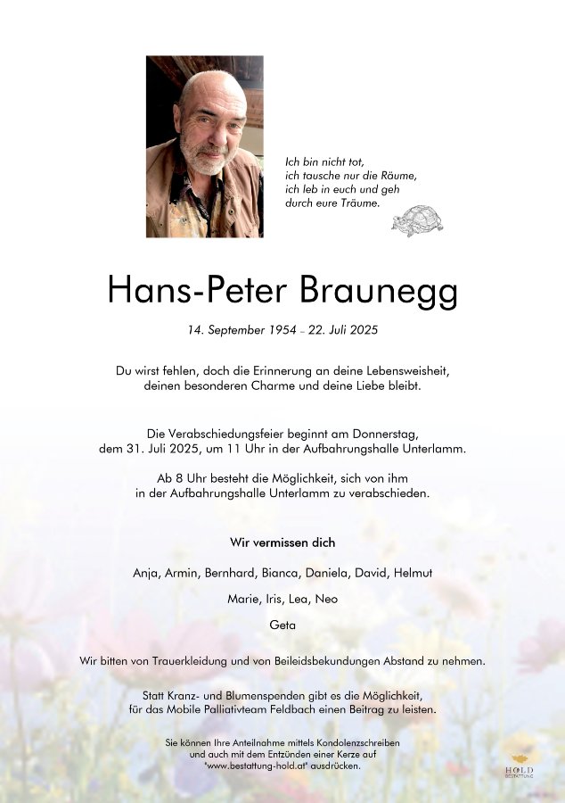 Hans-Peter Braunegggestorben am 22. Juli 2025
