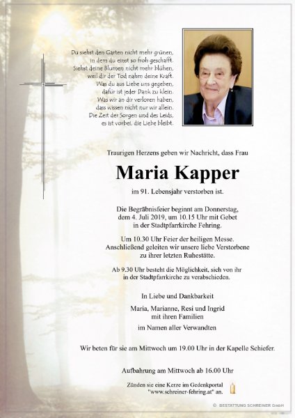 Maria Kappergestorben am 30. Juni 2019