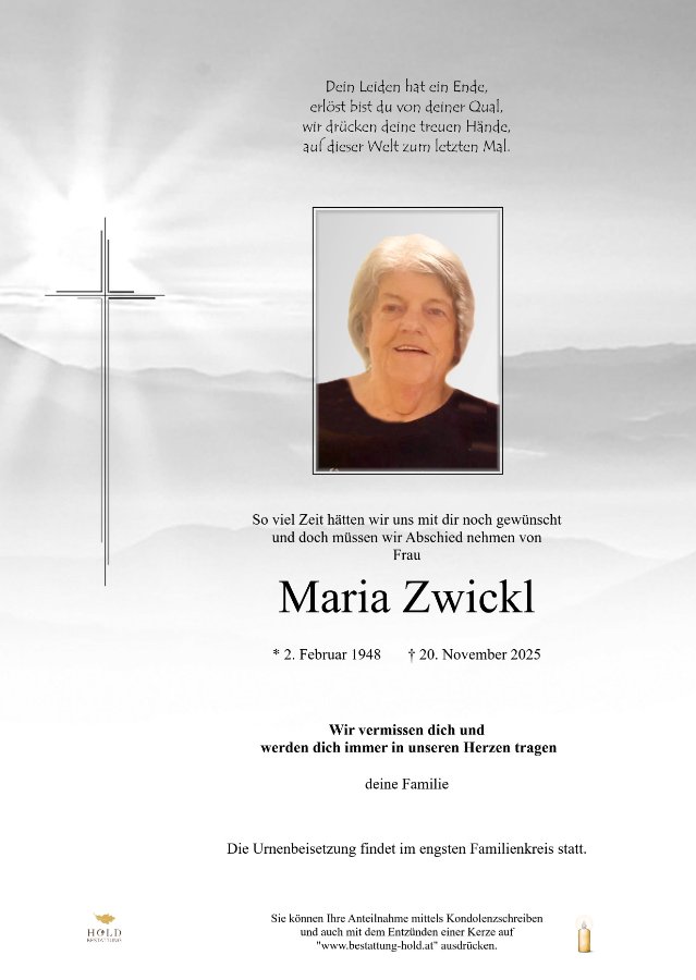 Maria Zwicklgestorben am 20. November 2025