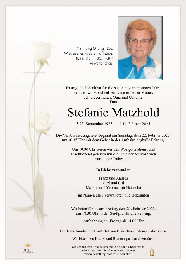 Stefanie Matzholdgestorben am 11. Februar 2025